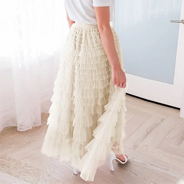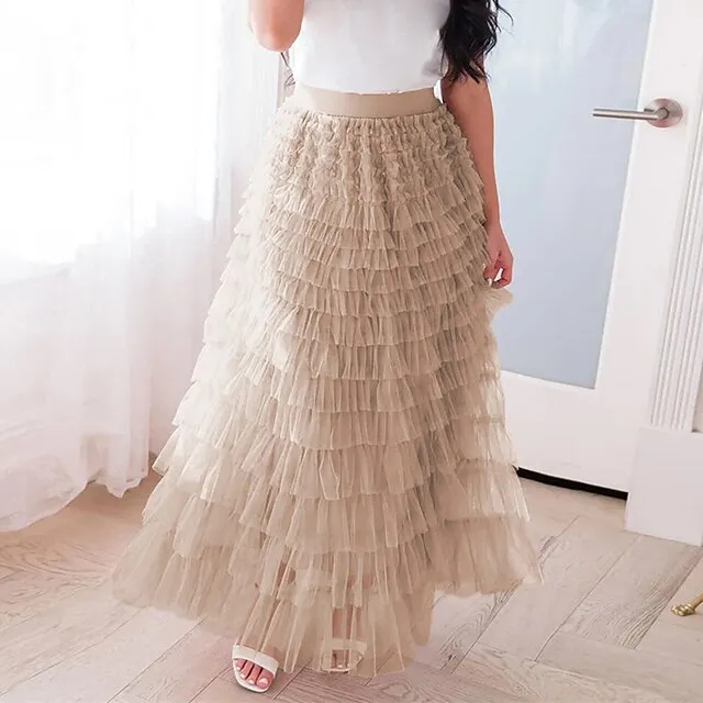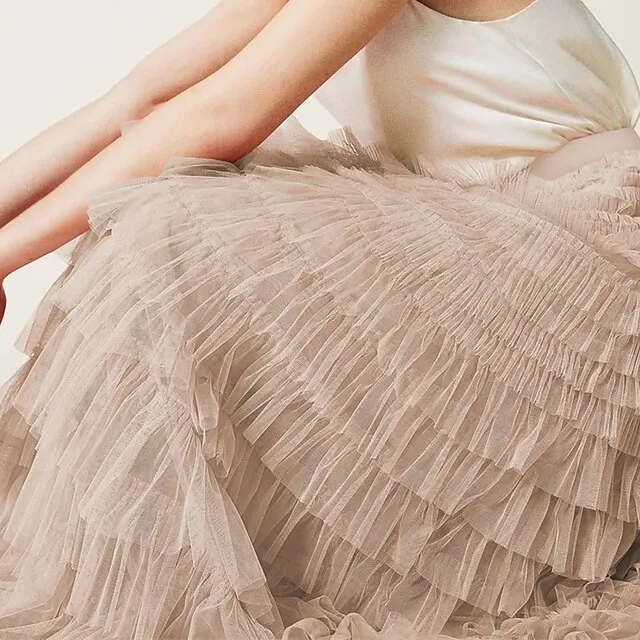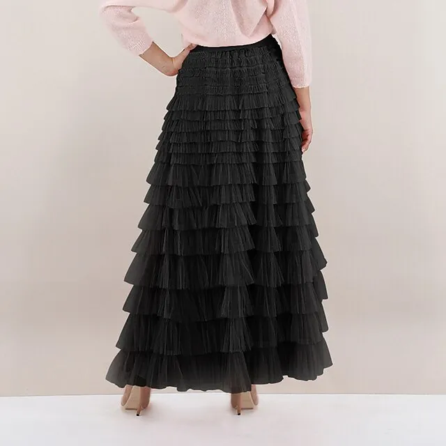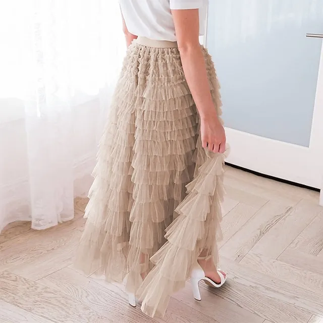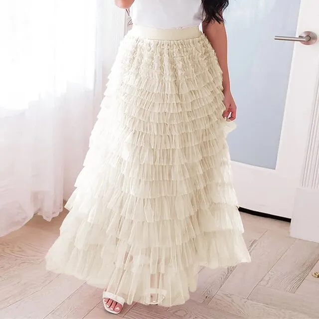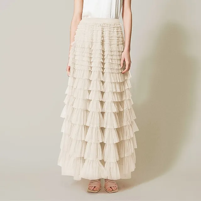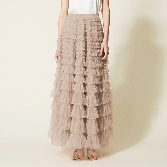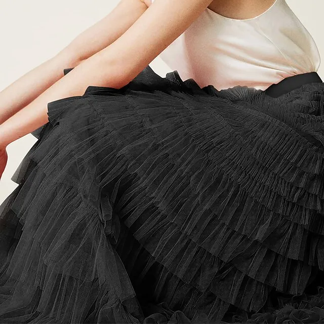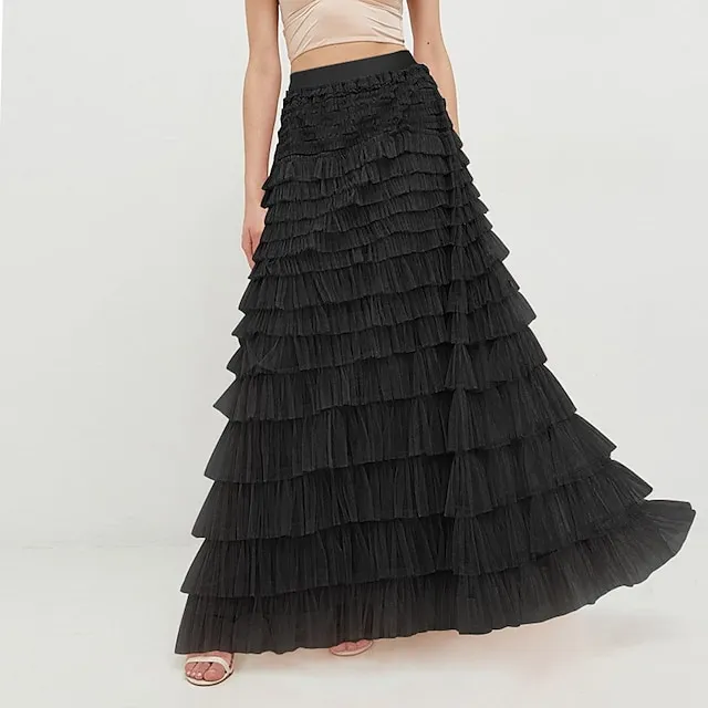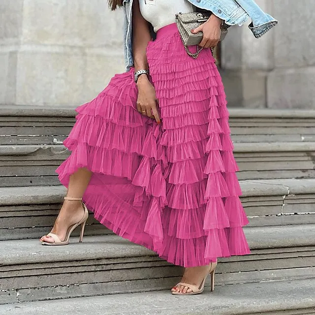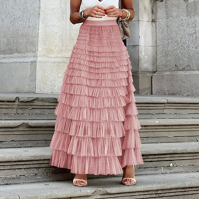 Women’s Skirt Swing Tutu Maxi Polyester Apricot Black Khaki Rose Red Skirts Spring & Summer Pleated High Waist Fashion Elegant Casual Street Daily S M L
