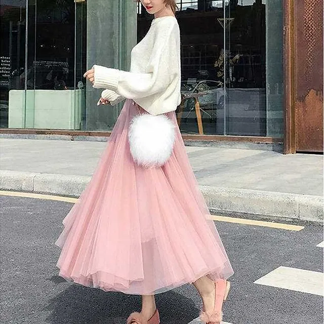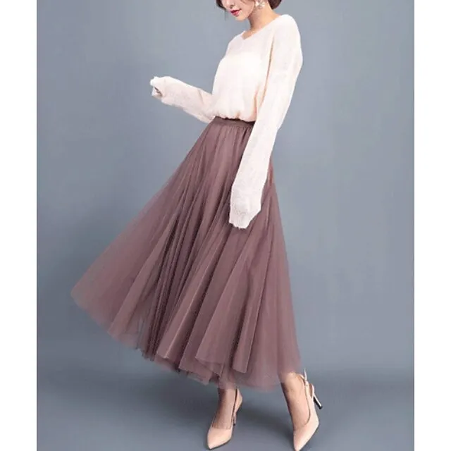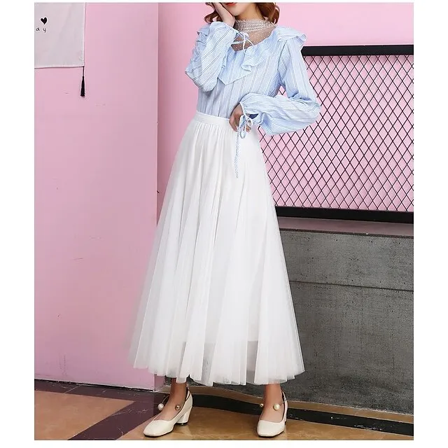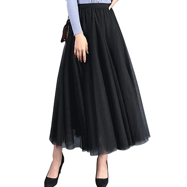 Women’s Skirt Tulle Midi Black White Pink Camel Skirts All Seasons Chiffon Lined Party Daily One-Size