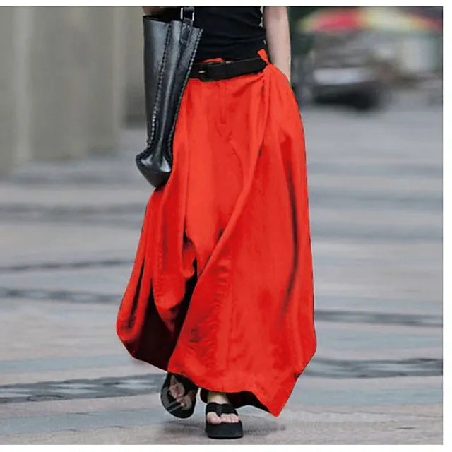 Women’s Skirt Work Skirts Long Skirt Maxi Cotton Polyester Black Red Dark Gray Skirts Summer Pocket Without Lining Basic Summer Street Casual Daily S M L