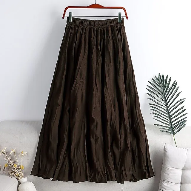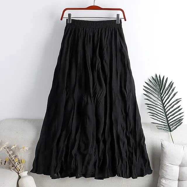 Women’s Skirt Work Skirts Long Skirt Midi Cotton Black Brown Beige Skirts Spring & Fall Ruched Fashion Daily Holiday One-Size