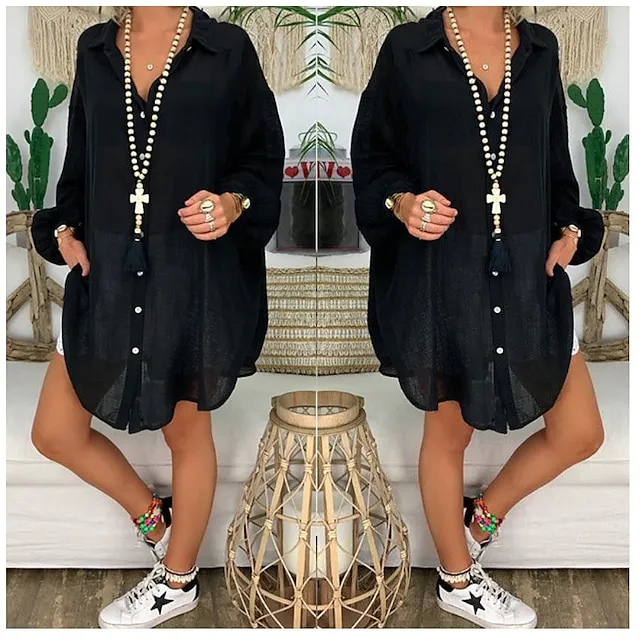 Linen Shirt Shirt Blouse Women’s Yellow Navy Blue Beige Solid Color Sexy Street Daily Fashion V Neck Cotton Linen Regular Fit M