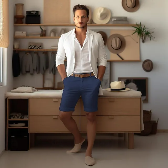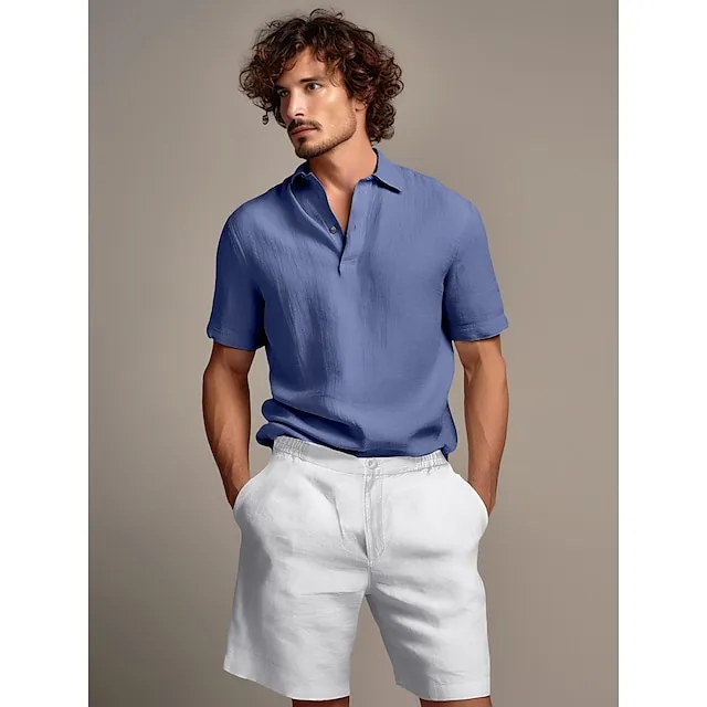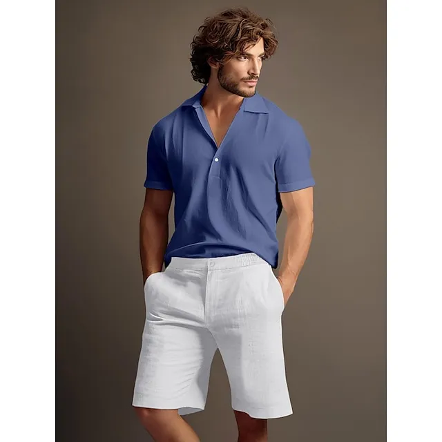40% Linen Men’s Shorts Linen Shorts Summer Shorts Button Up Pocket Plain Breathable Comfortable Short Daily Vacation Going out Classic Casual White Navy Blue