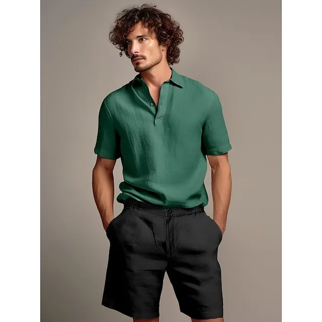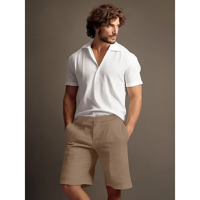 40% Linen Men’s Shorts Linen Shorts Summer Shorts Button Up Pocket Elastic Waist Plain Breathable Comfortable Short Daily Vacation Going out Classic Casual Black White