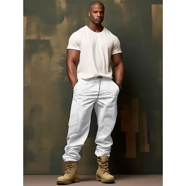 40% Linen Men’s Linen Pants Trousers Summer Pants Pocket Drawstring Elastic Waist Plain Breathable Comfortable Office / Career Daily Vacation Classic Casual Black White