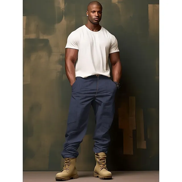40% Linen Men’s Linen Pants Trousers Summer Pants Drawstring Elastic Waist Elastic Cuff Plain Breathable Comfortable Daily Vacation Going out Classic Casual Black Navy Blue