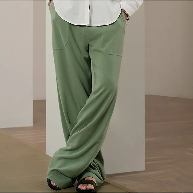 40% Linen Men’s Linen Pants Trousers Summer Pants Pocket Elastic Waist Straight Leg Plain Breathable Comfortable Office / Career Daily Vacation Classic Casual Black White