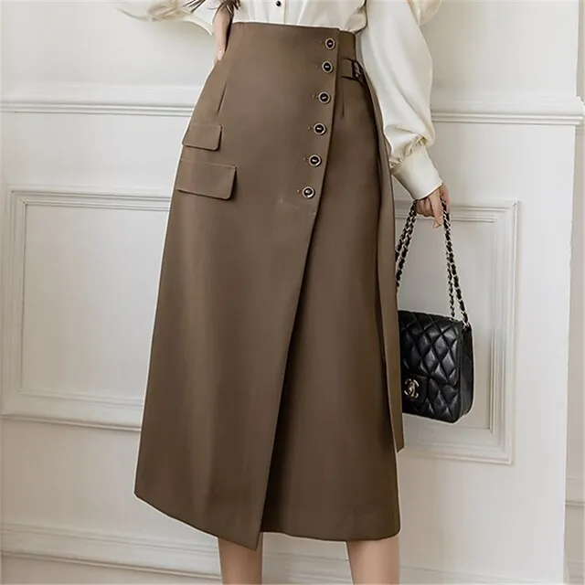 Women’s Skirt A Line Midi Linen Navy Blue Brown Beige Skirts Summer Basic Casual Casual Daily Weekend One-Size