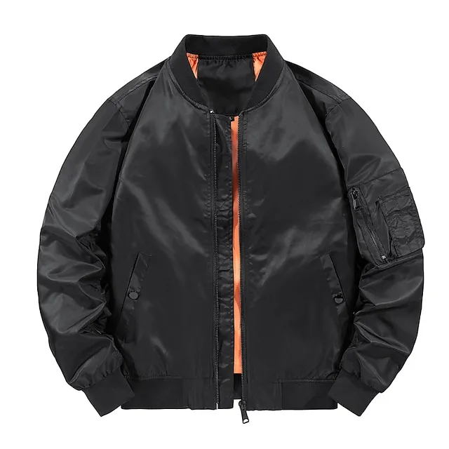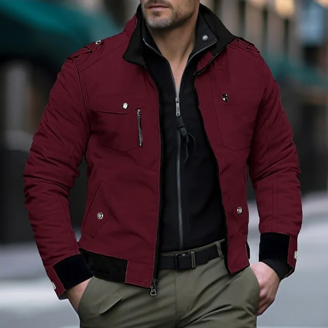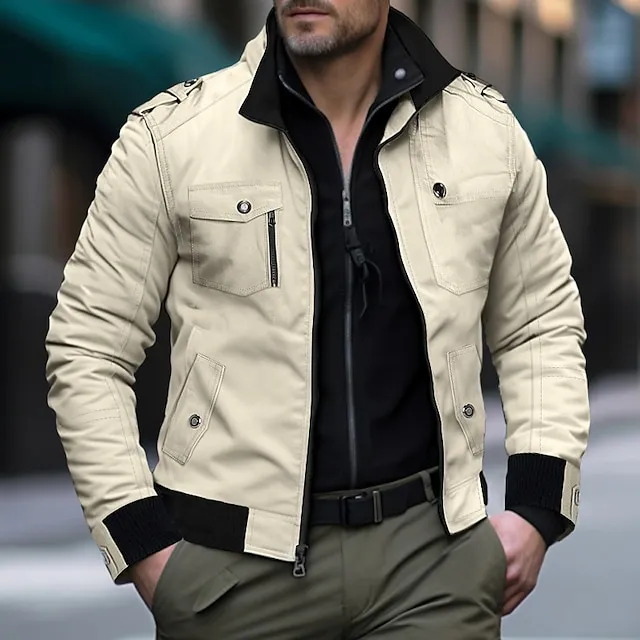 Men’s Bomber Jacket Casual Jacket Work Jacket Outdoor Daily Wear Wearable Pocket Spring & Fall Plain Fashion Streetwear Standing Collar Short Black Red Blue Khaki Army Green Jacket