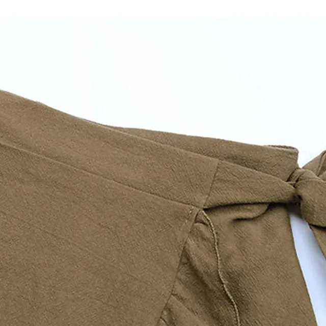 Women’s Skirt Wrap Skirt Above Knee Cotton Linen Army Green Skirts Summer Ruffle Pocket High Waist Basic Casual Casual Daily Weekend S M L