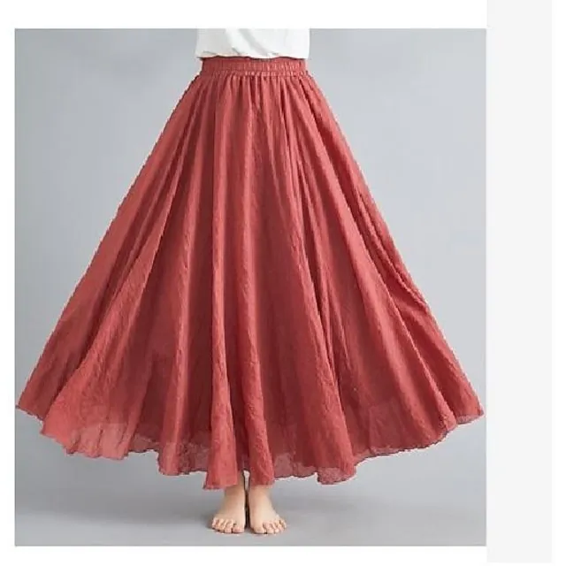 Women’s Swing Long Skirt Maxi Cotton Cotton And Linen Black White Yellow Red Skirts Spring & Fall Pleated Lined Elegant Summer Casual Daily 85cm 95cm