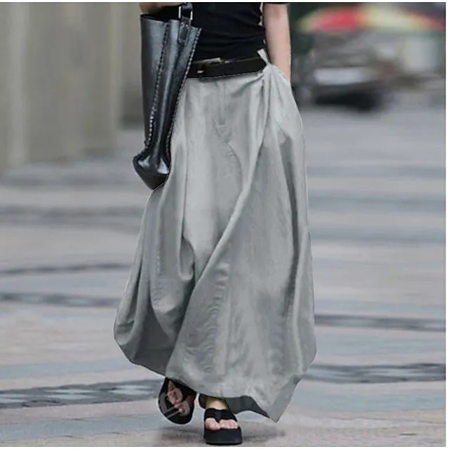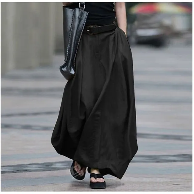 Women’s Swing Skirts Maxi Linen Cotton Blend Black White Yellow Light Green Skirts Daily Casual Office / Career Spring Summer S M L