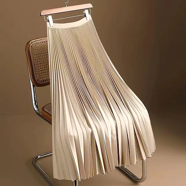 Women’s Skirt Swing Tutu Maxi Polyester Apricot Black Khaki Rose Red Skirts Spring & Summer Pleated High Waist Fashion Elegant Casual Street Daily S M L