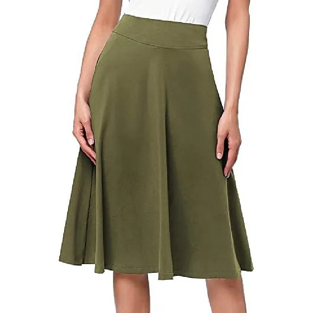 Women’s Swing Work Skirts Midi Black Yellow Light Green Wine Skirts Knitting Elegant Office / Career S M L
