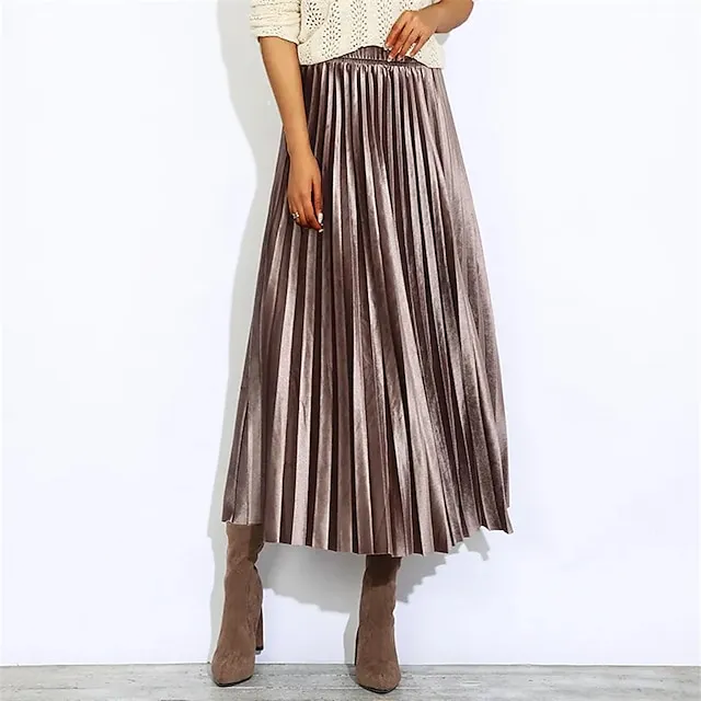 Women’s Swing Long Skirt Midi Polyester Gold Velvet Black White Silver Champagne Skirts Spring & Summer Pleated Without Lining Elegant Fashion Casual Office / Career Street M L XL