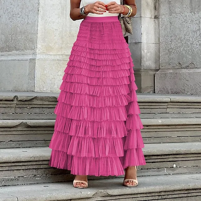 Women’s Swing Long Tulle Skirt Maxi Black White Pink Red Skirts Ruffle Layered Fashion Summer Performance Casual Daily M L XL