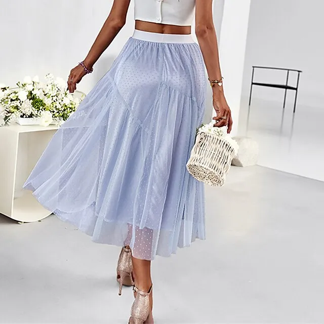Women’s Skirt Long Skirt Midi Tulle Wine Red Pink Blue Skirts Fall & Winter Ruched Fashion Elegant Street Daily M L XL