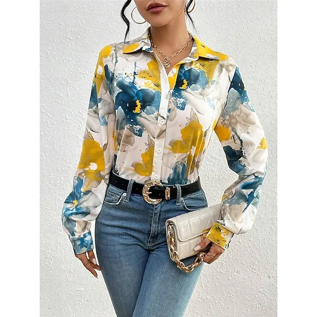 Shirt Women’s Black-1 White Blue Solid Color Button Daily Daily Basic Shirt Collar Regular Fit M / M