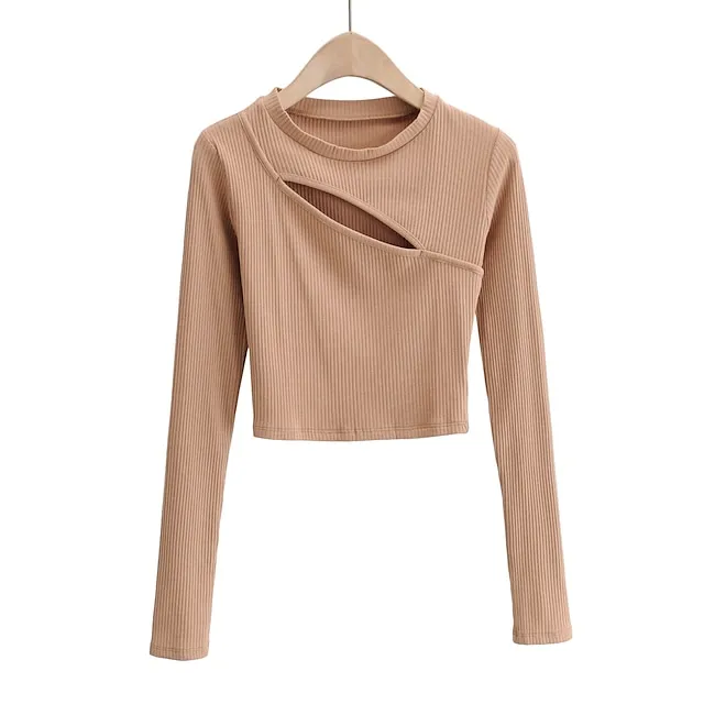 T shirt Tee Crop Tshirt Women’s Black White Purple Plain Cut Out Daily Fashion Round Neck Slim S