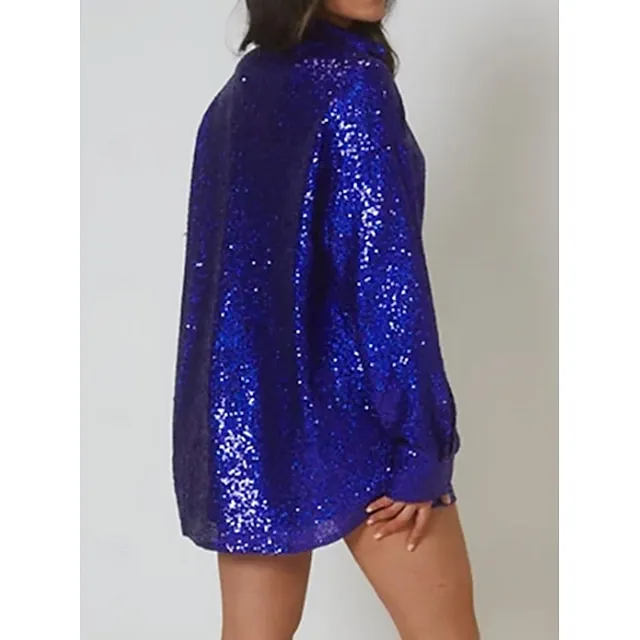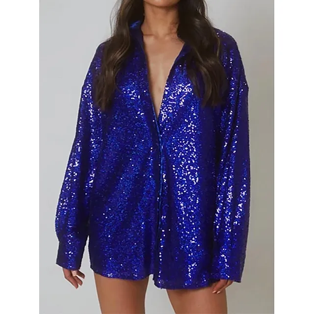 Shirt Blouse Women’s Pink Blue Sparkly Button Street Daily Fashion Shirt Collar Regular Fit S