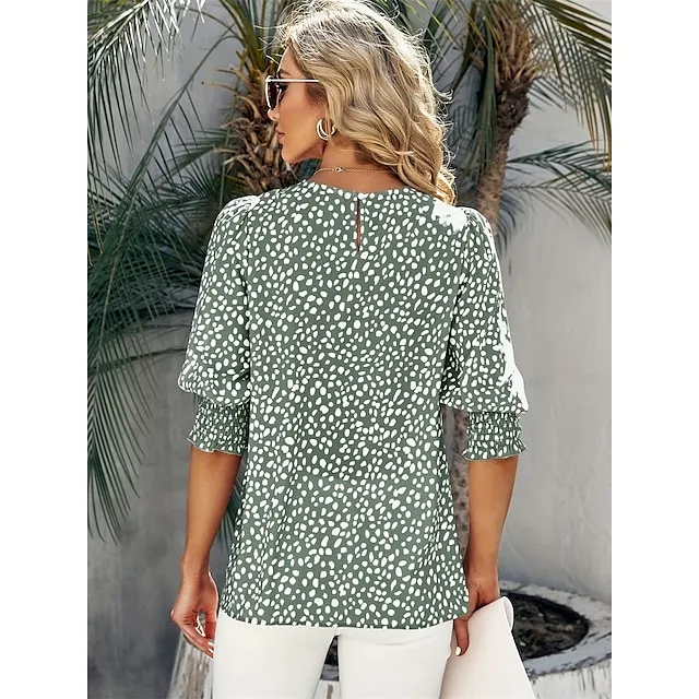 Shirt Blouse Women’s Black Pink Green Spot Print Daily Fashion Round Neck Regular Fit S