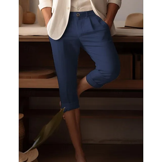 40% Linen Men’s Linen Shorts Summer Shorts Linen Capri Pants Button Up Pocket Plain Breathable Comfortable Calf-Length Daily Vacation Going out Classic Casual Black Navy Blue