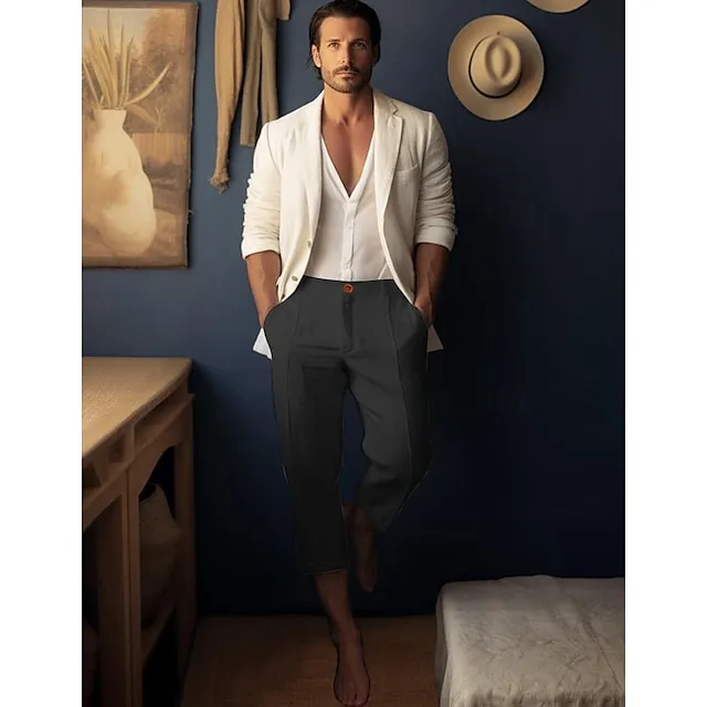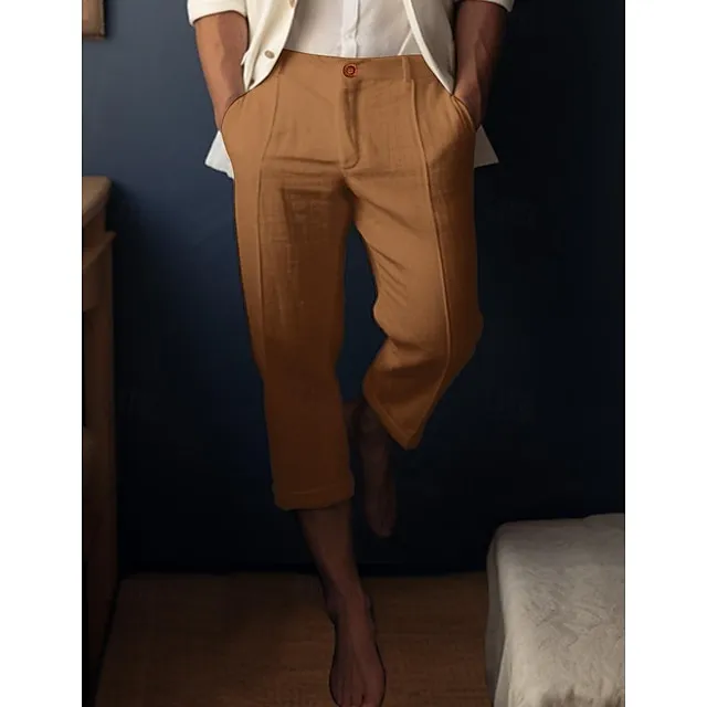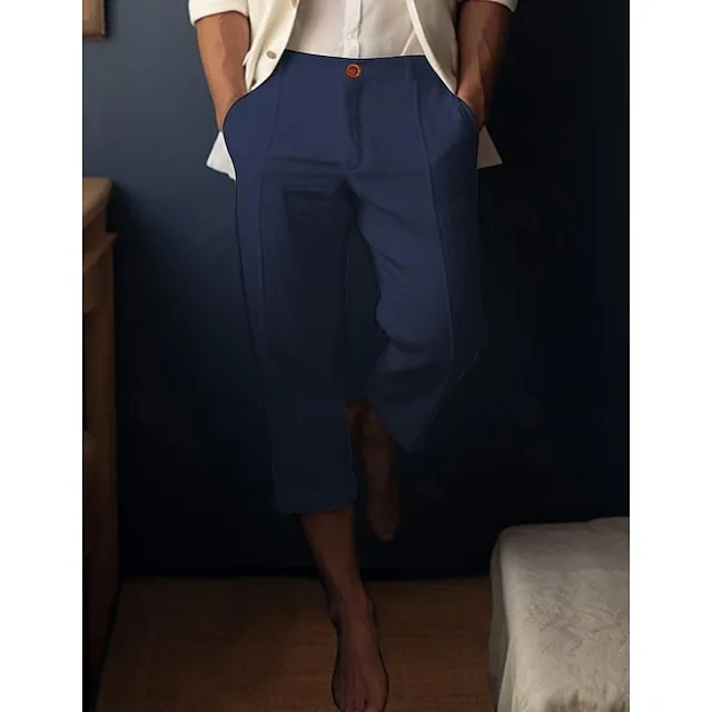 40% Linen Men’s Linen Shorts Summer Shorts Linen Capri Pants Button Up Pocket Plain Breathable Comfortable Calf-Length Daily Vacation Going out Classic Casual Black Navy Blue