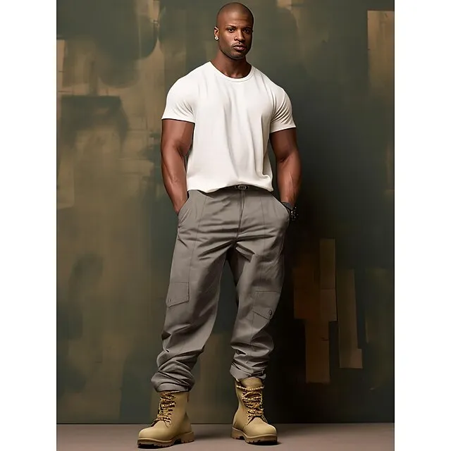 Men’s Cargo Pants Cargo Trousers Pocket Drawstring Elastic Waist Plain Comfort Breathable Outdoor Daily Going out Fashion Casual Black Khaki