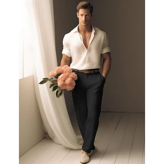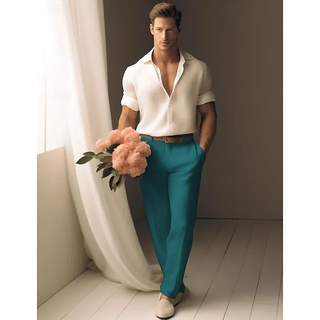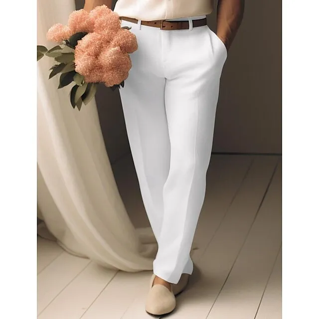 40% Linen Men’s Linen Pants Trousers Summer Pants Pocket Straight Leg Plain Breathable Comfortable Office / Career Daily Vacation Classic Casual Black White