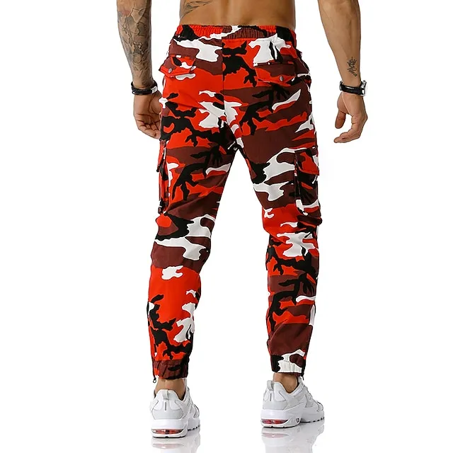 Men’s Cargo Pants Cargo Trousers Trousers Camo Pants Elastic Waist Flap Pocket Camouflage Full Length Work Holiday Cotton Blend Stylish Casual / Sporty Army Green Red Micro-elastic