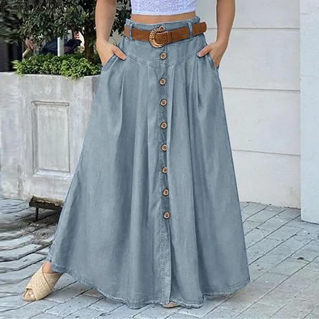 Women’s Swing Work Skirts Long Skirt Maxi Polyester Black Wine Royal Blue Skirts Summer Pocket Split Without Lining Streetwear coastal grandma style Basic Summer Office / Career Casual Daily M L XL