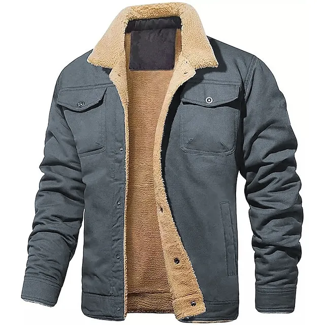 Men’s Winter Coat Winter Jacket Fleece Jacket Work Jacket Daily Wear Vacation Warm Pocket Button-Down Winter Solid / Plain Color Comfort Leisure Turndown Dark-Gray Black Yellow Dark Blue Military