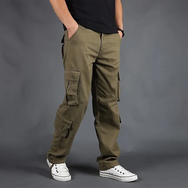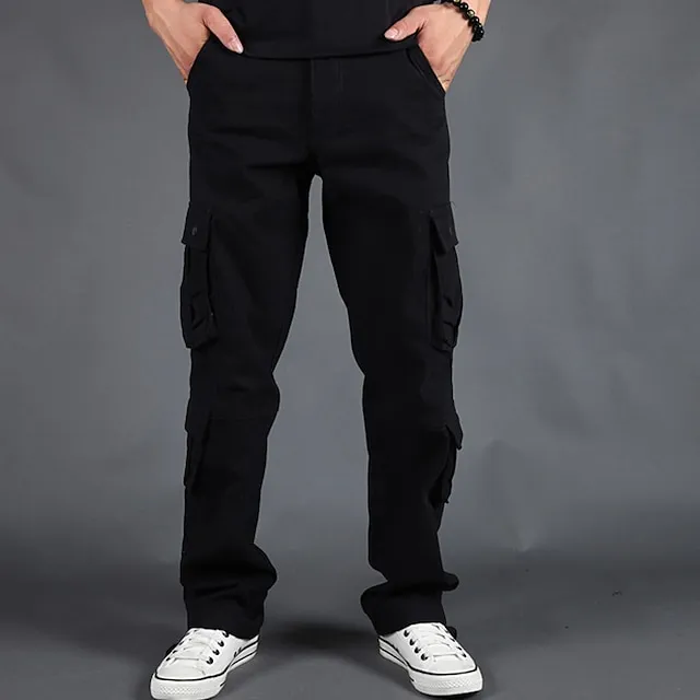 Men’s Cargo Pants Cargo Trousers Baggy Pocket Plain Comfort Breathable Outdoor Daily Going out 100% Cotton Casual Big and Tall Black Green