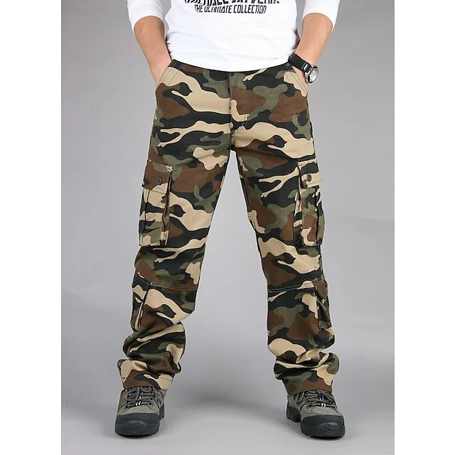 Men’s Cargo Pants Cargo Trousers Softshell Pants Tactical Pants Print Pocket Camouflage Comfort Breathable Outdoor Daily Going out Fashion Casual Black Green