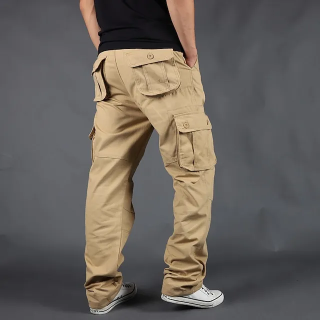 Men’s Cargo Pants Cargo Trousers Trousers Elastic Waist Multi Pocket Straight Leg Multi Color Outdoor Sports Full Length Daily Wear Casual ArmyGreen Black Inelastic