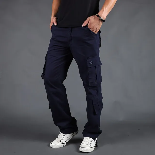 Men’s Cargo Pants Cargo Trousers Trousers Parachute Pants Leg Drawstring Multi Pocket Straight Leg Plain Comfort Wearable Outdoor Daily Going out 100% Cotton Sports Stylish Camouflage Blue Camouflage
