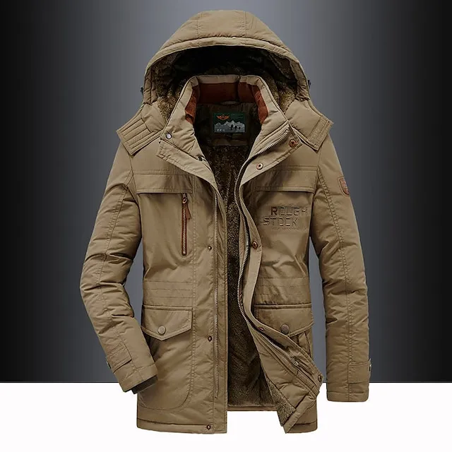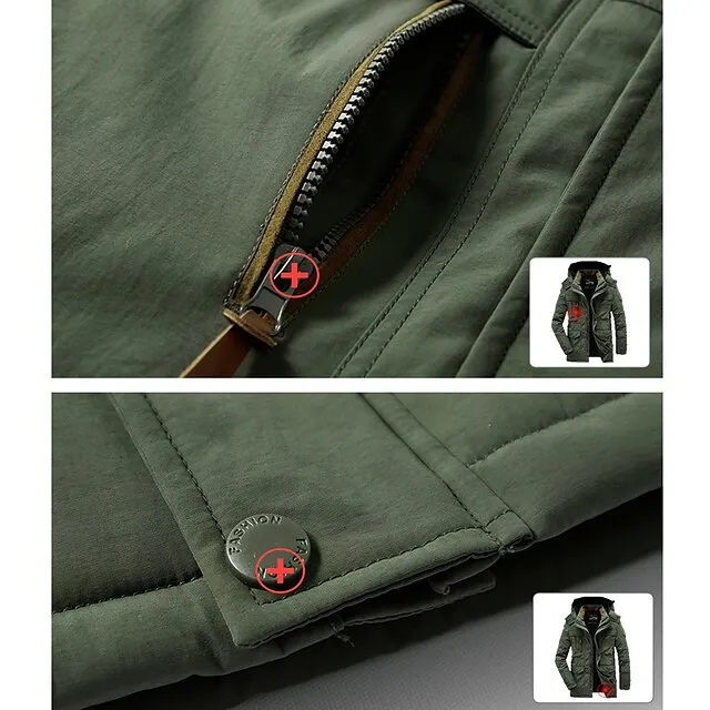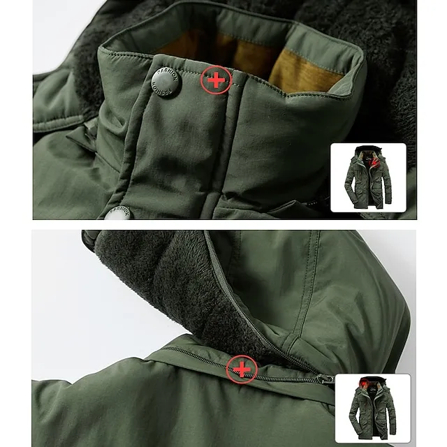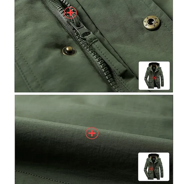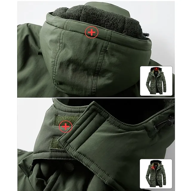 Men’s Hiking Fleece Jacket Winter Jacket Thick Warm Hooded Parka Military Windbreaker Outdoor Detachable Cap Black Trench Coat Outerwear Hunting Ski Snowboard Camping Caving Army Green Khaki Blue
