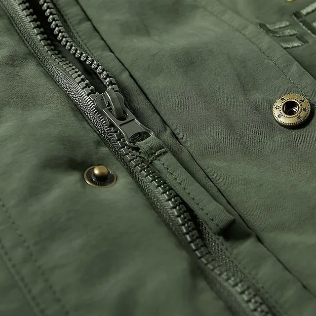 Men's Cargo Jacket Hoodied Jacket Tactical Jacket Sports & Outdoor Fishing Thermal Warm Windproof Patchwork Autumn / Fall Letter Sporty Turndown Regular Army Green Blue Khaki Jacket