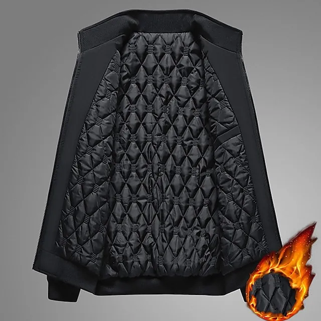Men’s Jacket Casual Jacket Outdoor Daily Wear Warm Zipper Pocket Fall Winter Plain Fashion Streetwear Lapel Regular Black White Blue Khaki Gray Jacket