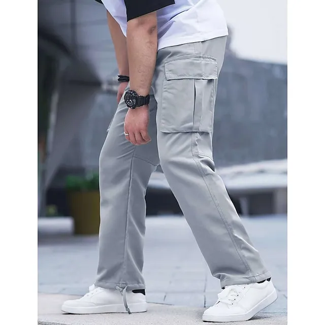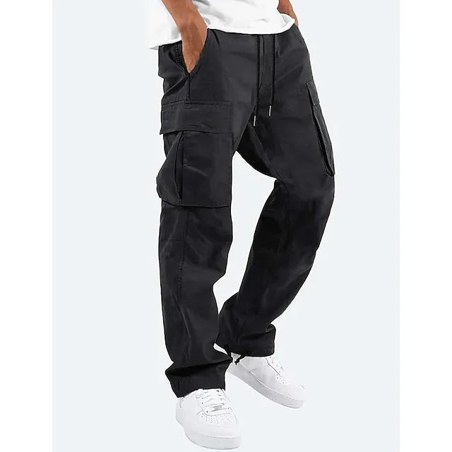 Men’s Cargo Pants Cargo Trousers Pocket Drawstring Elastic Waist Plain Comfort Breathable Outdoor Daily Going out Fashion Casual Black Khaki
