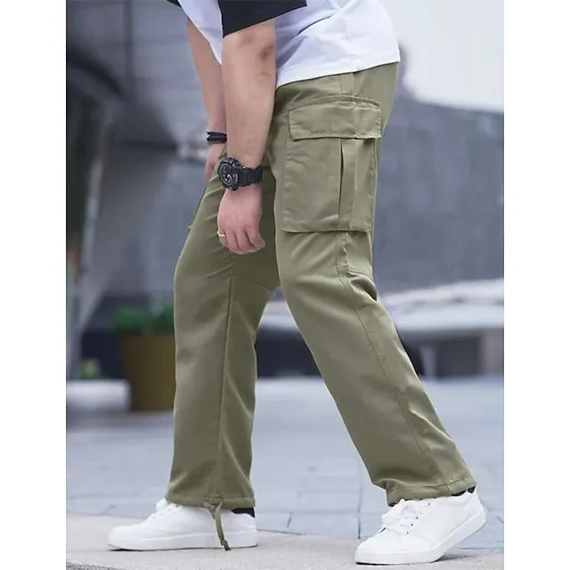 Men’s Cargo Pants Cargo Trousers Trousers Elastic Waist Multi Pocket Straight Leg Multi Color Outdoor Sports Full Length Daily Wear Casual ArmyGreen Black Inelastic
