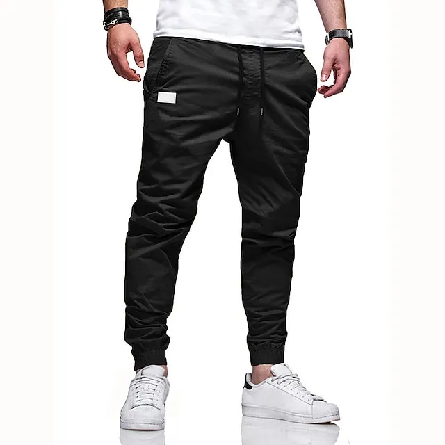 Men’s Cargo Pants Cargo Trousers Joggers Trousers Casual Pants Drawstring Elastic Waist Elastic Cuff Plain Sports Outdoor Running Cotton Streetwear Workout ArmyGreen Black