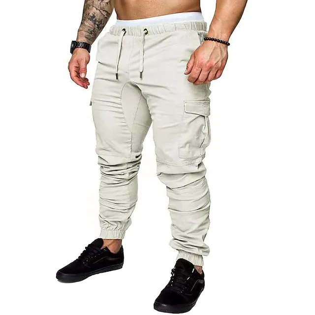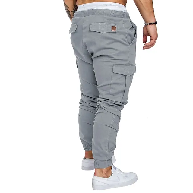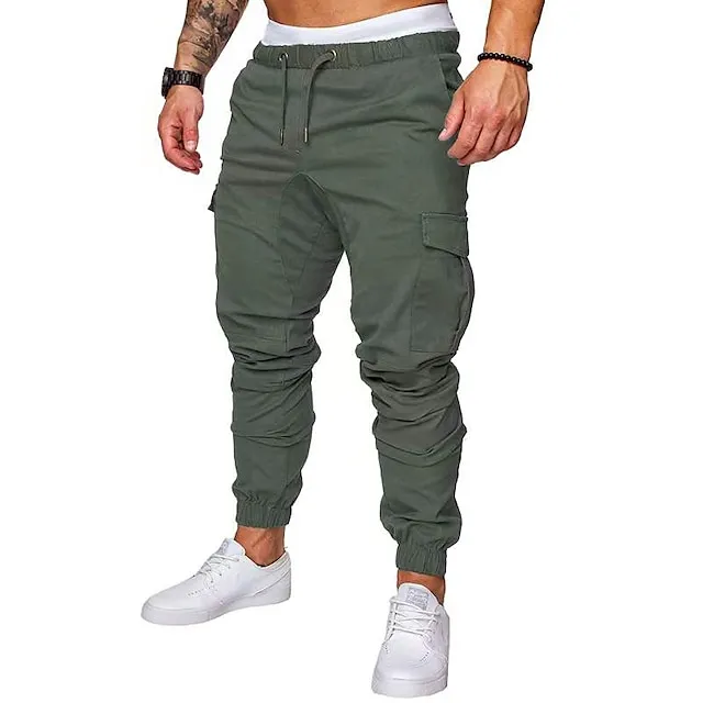 Men’s Cargo Pants Cargo Trousers Joggers Drawstring Elastic Waist Plain Comfort Breathable Outdoor Daily Going out Fashion Casual Black Light Green