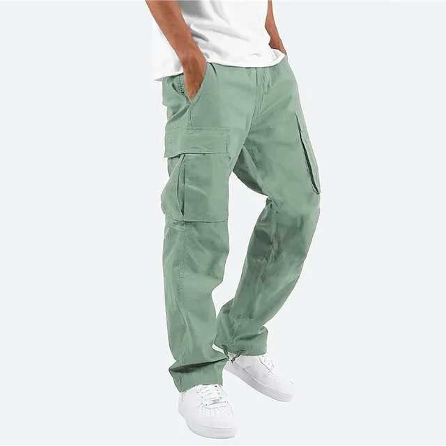 Men’s Cargo Pants Cargo Trousers Joggers Trousers Leg Drawstring Multi Pocket Straight Leg Plain Comfort Breathable Casual Daily Fashion Streetwear Black Light Green