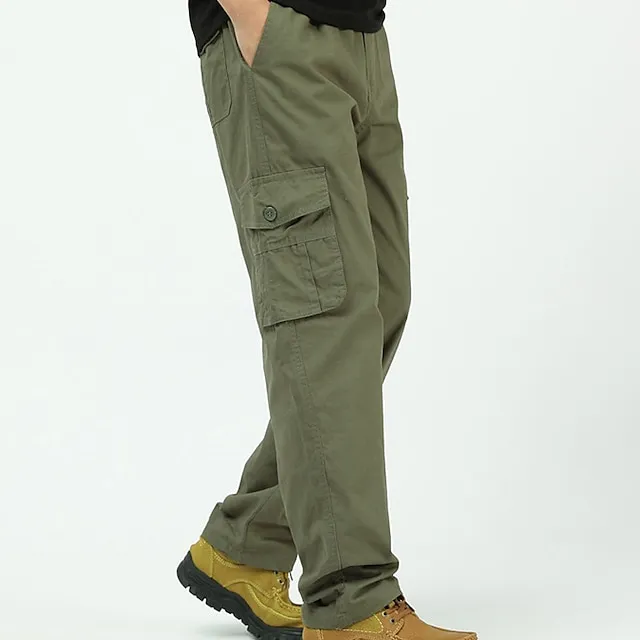 Men’s Cargo Pants Trousers Casual Pants Pocket Straight Leg Solid Color Comfort Warm Daily Holiday Going out Sports Fashion Black Yellow Micro-elastic