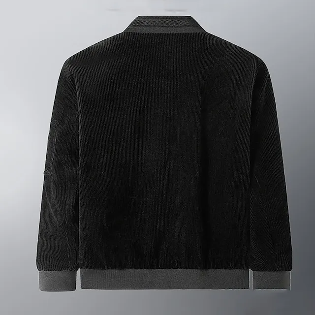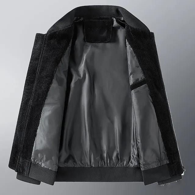 Men’s Corduroy Jacket Varsity Jacket Outdoor Daily Wear Warm Zipper Pocket Fall Winter Plain Fashion Streetwear Standing Collar Regular Light Sky Blue Black khaki Jacket