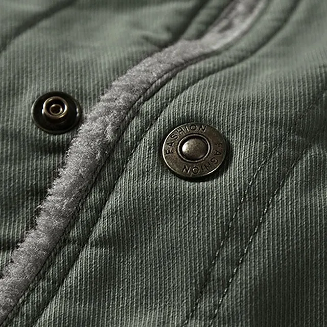 Men’s Jacket Outdoor Daily Wear Warm Button Pocket Fall Winter Plain Fashion Streetwear Lapel Regular Black Khaki Army Green Jacket