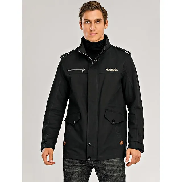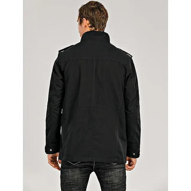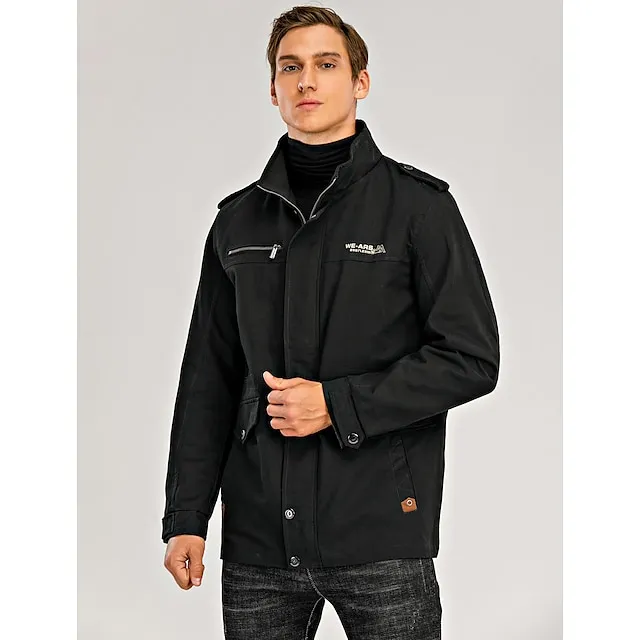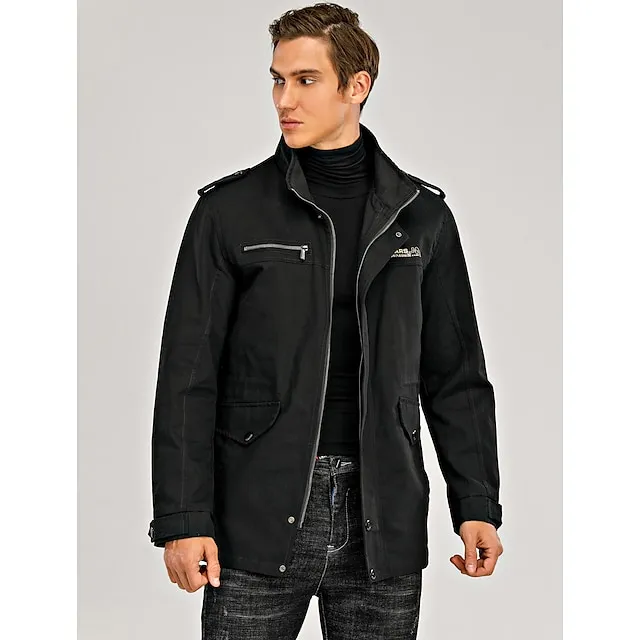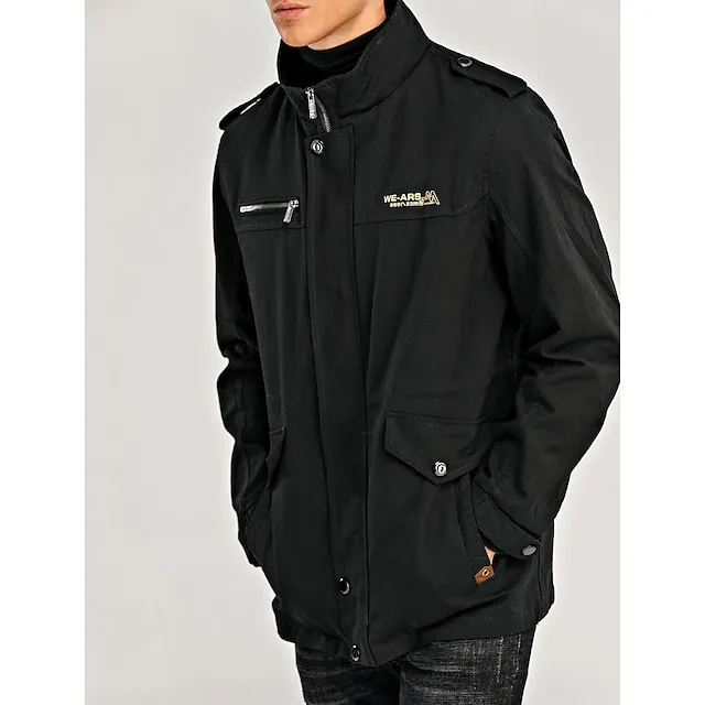 Men’s Lightweight Jacket Summer Jacket Jacket Daily Going out Weekend Standing Collar Military Jacket Outerwear Solid Colored Black Army Green Khaki