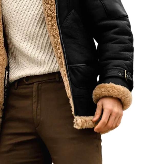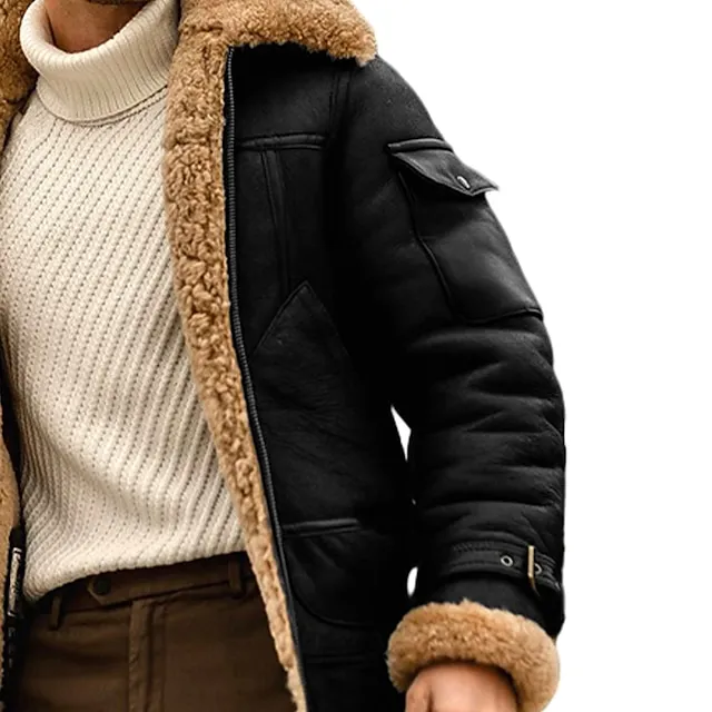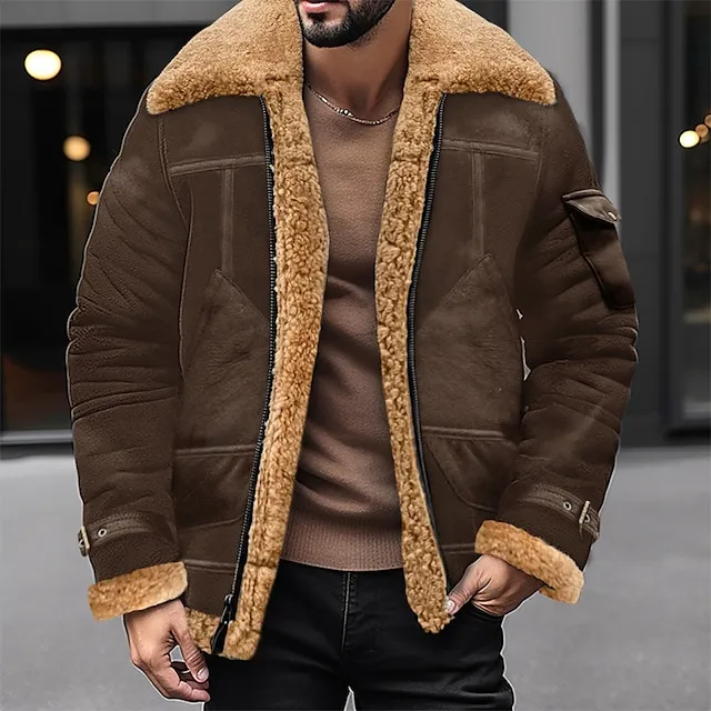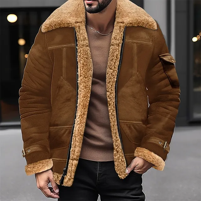 Men’s Winter Coat Winter Jacket Shearling Coat Sherpa Jacket Outdoor Daily Wear Warm Fall Winter Plain Fashion Streetwear Lapel Regular Black Wine Brown Khaki Coffee Jacket