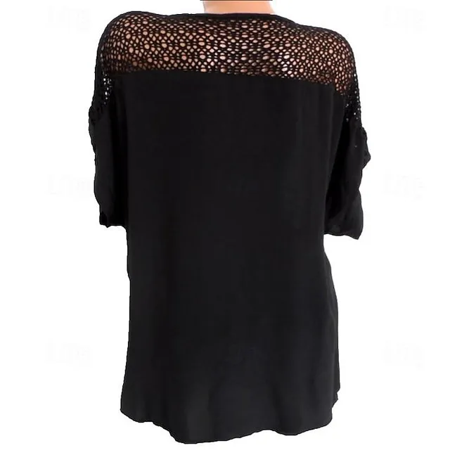 Shirt Blouse Women’s Black White Red Solid Color Lace Street Daily Fashion V Neck S