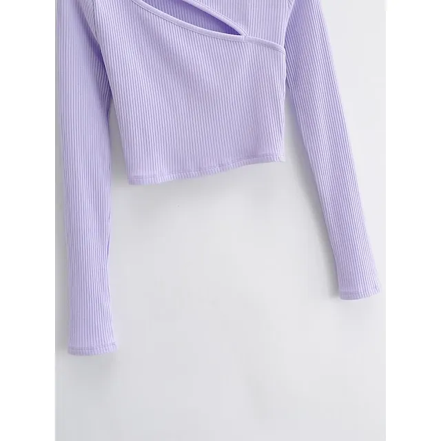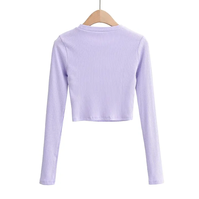 T shirt Tee Crop Tshirt Women’s Black White Purple Plain Cut Out Daily Fashion Round Neck Slim S